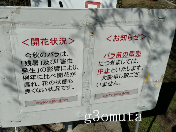 バラ園全景 赤いバラ 赤いバラ複数 黄色いバラ ことしの秋のバラの開花具合はよくないという掲示がある 付近では有明海沿岸道路工事中。四山あたりはどうなることか