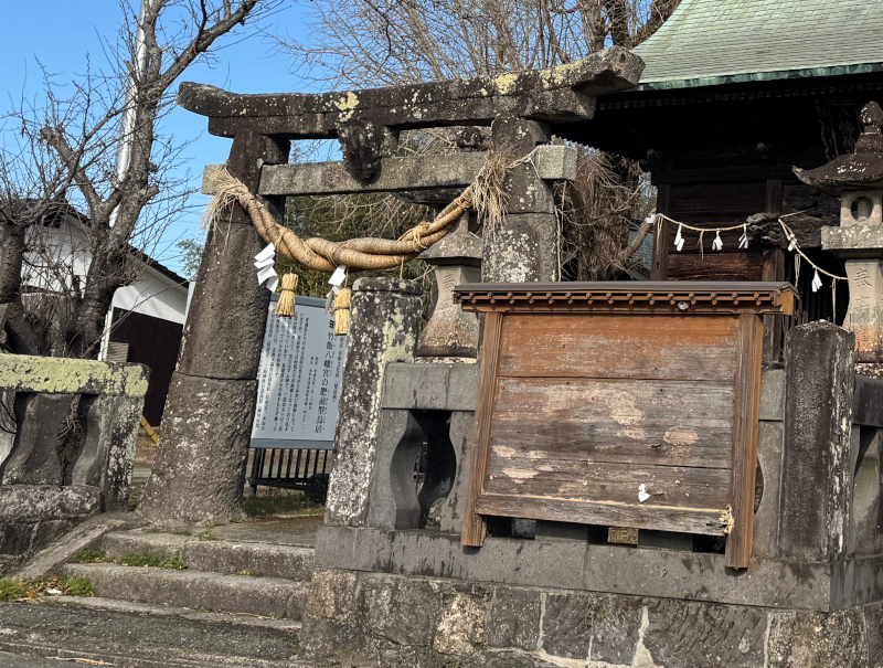 普通私たちのみる鳥居は笠木が全体的に曲線になっていますが、肥前型では両端だけが曲線となっており島木と貫の間が狭くて、笠石はずん胴で、二段あるいは三段の継目をもっています。基礎部分も台座をもたず掘っ立て式になっているのが特徴です。 筑後地方には、北野天満宮石造鳥居(県指定)、水田天満宮石造鳥居(県指定)、三島神社石造鳥居(柳川市指定)、玉垂神社の鳥居(みやま市指定)等の肥前型鳥居があって、それぞれ有形文化財として指定されています。